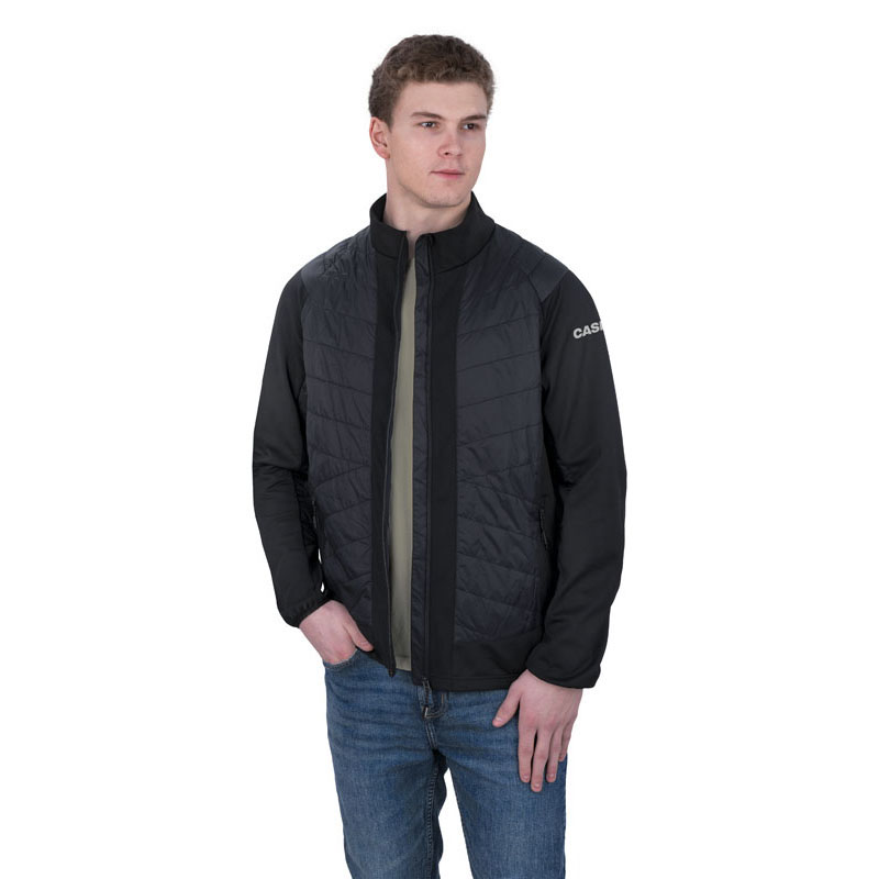 *100% Nylon 1.6 oz. shell fabric *95%Polyester/5%Spandex knit sleeve & side panels with stretch *Chest & back panels have 2.8 oz. insulation *Two side zippered pockets *YKK® center front zipper *Flattering fit* Suggested Retail: $119.95