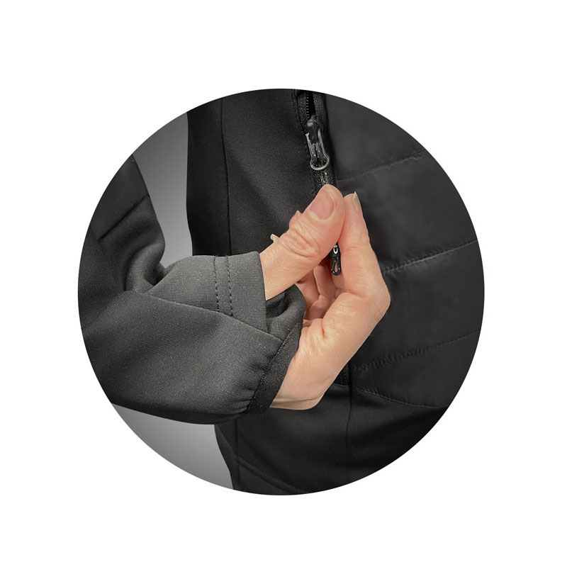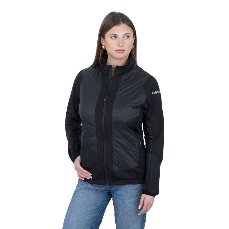 *100% Nylon 1.6 oz. shell fabric *95%Polyester/5%Spandex knit sleeve & side panels with stretch *Chest & back panels have 2.8 oz. insulation *Two side zippered pockets *YKK® center front zipper *Flattering fit* Suggested Retail: $119.95